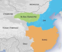 몽고족들이 작은 부족 연맹에 머무르던 시절, 그 당시 동아시아는 남송(宋, Song), 금(金, Jin), 서하(西夏, Xi Xia) 등의 제국들로 쪼개져 있었다. 아래는 figure 1에 표시된 각 세력에 대한 간단한 설명이다: