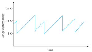 - bandwidth probing: ACK가 오면 send rate를 점점 높이고 패킷이 손실되며 send rate를 낮추고 다시 속도를 높히며 이를 반복한다.