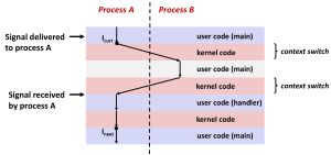 - 커널은 destination 프로세스의 context 일부 상태를 업데이트해 해당 프로세스에 시그널을 보낸다. 다음은 signal이 전달되는 경우이다.