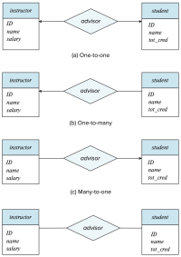- one-to-many: 강사가 여러 학생을 지도할 수 있지만, 학생은 최대 한 명의 지도교수만 가질 수 있다.