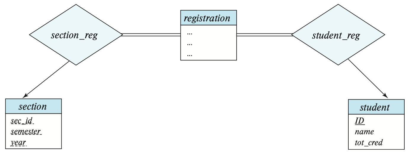 Replacement of takes by registeration and two relationshipt sets
