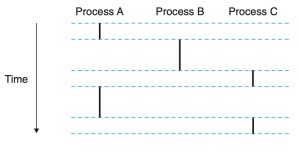 프로세스가 다른 프로세스들과 번갈아서 실행하는 것을(concurrently하게) multitasking이라고 한다. time slice란 자신의 flow 일부를 실행하는 단위를 의미한다.[3]