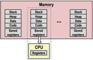 • An independent logical control flow: 각 프로그램이 CPU를 독점적으로 사용하는 것처럼 보이게 함