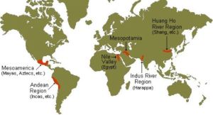 신석기 혁명은 농업과 정착 생황의 본격화를 가능하게 했다. 이는 주로 원활한 농업을 통한 곡물 생산(Grain)은 강 유역에서 인구가 밀집되도록 만들었다. 또한 강은 강 주위에서 모여든 여러 사람들이 강을 통해서 서로 교류할 수 있도록 하여 국가 형성과 사회 발전에 결정적인 역할을 했다. Figure 1은 전세계의 주요 초기 문명들이 어디에서 형성되었는지를 보여주는데, 강 유역에서만 제국이 탄생했다는 것을 알 수 있다.