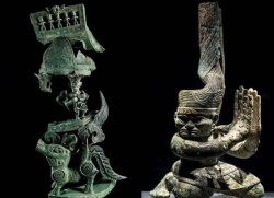 산싱두이(三星堆, Sanxingdui) 문명은 쓰촨 지역에 위치한 독자적인 청동기 문화를 가진 문명이다. Figure 4에 제시되어 있듯이 거대한 가면, 청동 나무, 인형상 등의 상나라와는 전혀 다른 청동기 유물들을 보여주며, 이는 “중국 문명의 기원 = 황허 문명”이라는 전통적 서술을 흔들고, 고대 중국 문명이 단일하게 발달하지 않고 다원적으로 발달했음을 보여준다.