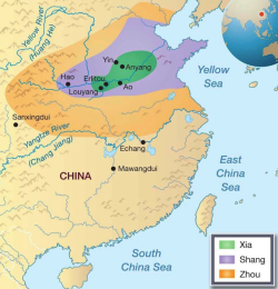 상 왕조는 1600-1450 BCE 동안 존재하였으며, 수도는 안양[1]이며, 황허 유역이 정치/농업의 중심지였다.
