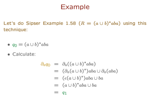 # 전이 함수 <math>\delta</math>: <math>\delta(E, a) = E_a</math>. 이때 <math>E_a = \partial_aE \in Q</math>