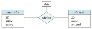 - 예를 들어서 학생 junyoung과 교수 junho 사이에는 advisor라는 relationship을 정의할 수 있다.