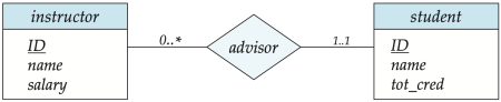 또한 instructor, student entity set의 각 사이의 relation을 위와 같이 표현할 수 있다.