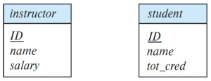- ↑ ex: ID-> student_ID, instructor_ID