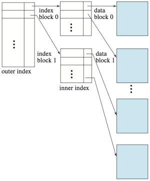 파일이 매우 커서 외부 인덱스 조차 메모리에 들어가지 못할 정도가 되며, 외부 인덱스 위에 또 다른 인덱스를 구성할 수 있으며, 이를 필요한 만큼 반복할 수 있다. 이와 같이 두 단계 이상의 계층 구조를 가진 인덱스를 다단계 인덱스(multilevel index)라고 부른다.